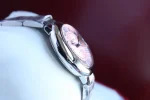 In stainless steel with a matching bracelet and blue accents at its dial, this timepiece is impeccably distinctive.