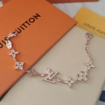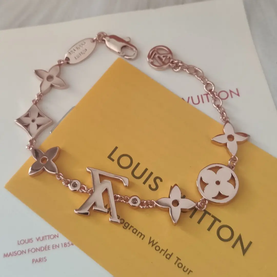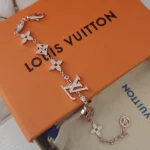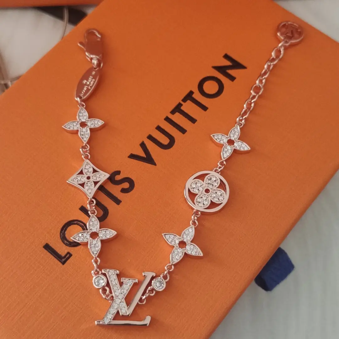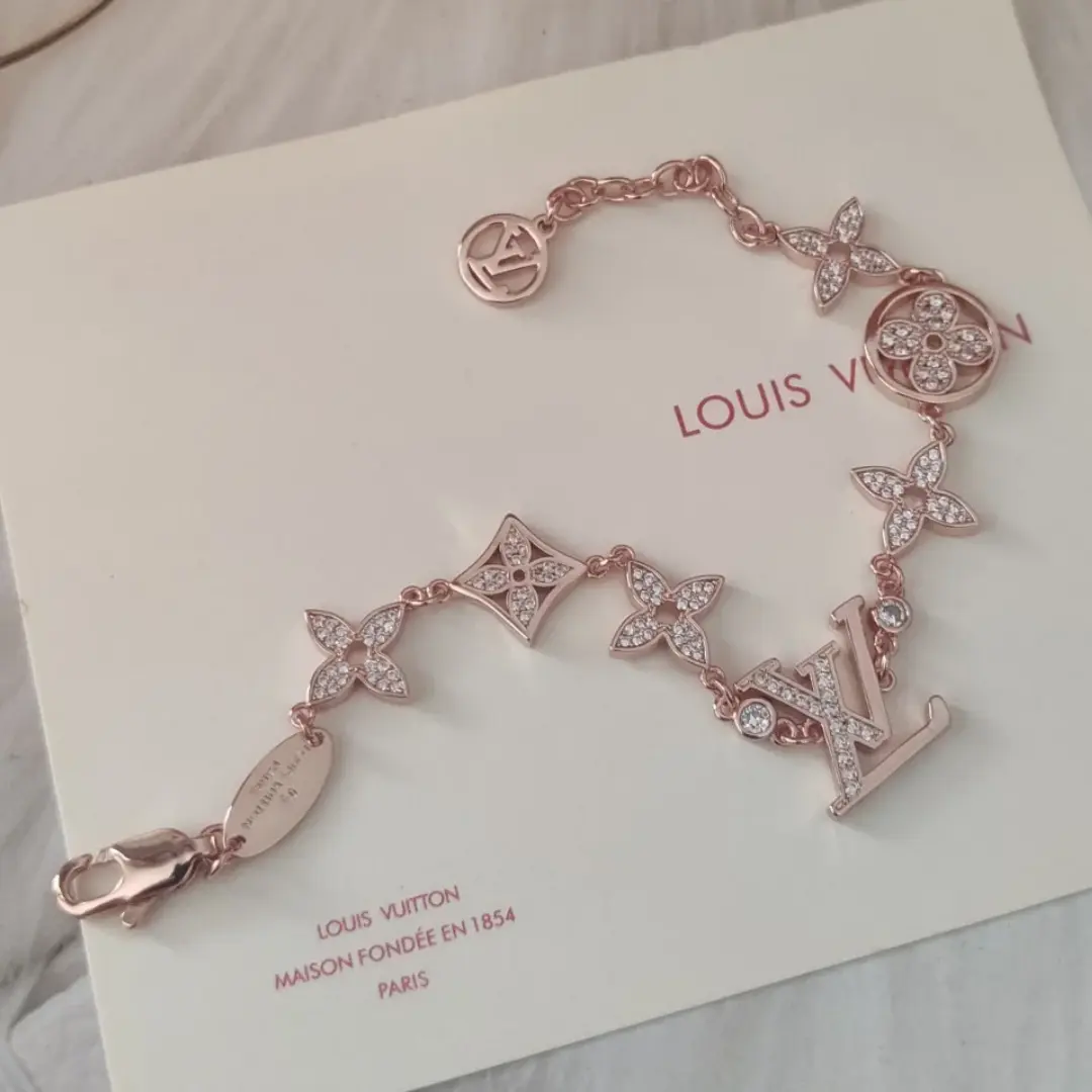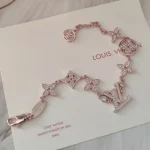 This LV bracelet is the perfect crystallization of elegance and feminine charm. The delicate pink gold chain is adorned with classic multi-colored LV motifs, while shimmering diamonds add a touch of radiant brilliance. It skillfully blends the brand’s legendary heritage with a modern sense of style, making it an indispensable and luxurious accent for everyday wear.